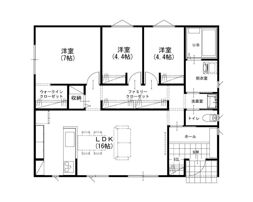 キッチンからリビング・ダイニングを見渡せる安心の間取りに加え、ウォークスルークローゼットで生活感を隠しながらしっかり収納できます。