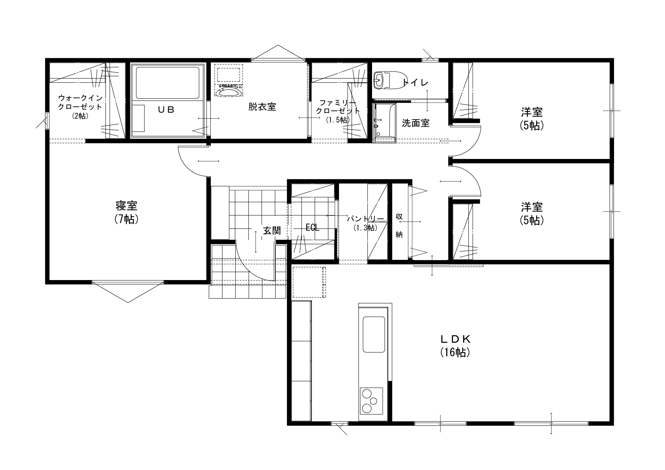 - 玄関→パントリー→キッチンのワンモーション動線