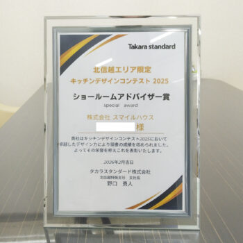 弊社の施工した住宅が〈ショールームアドバイザー賞〉を受賞しました!